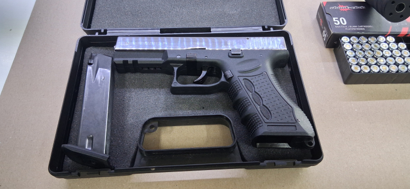 Dazu noch eine fast volle Schachtel Platzpatronen.