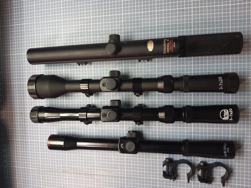 Sie bieten hier auf ein Set 4stk zielfernrohre unter anderen von nikko Sterling universal 4x retro plus andere siehe Bilder inkl montagen