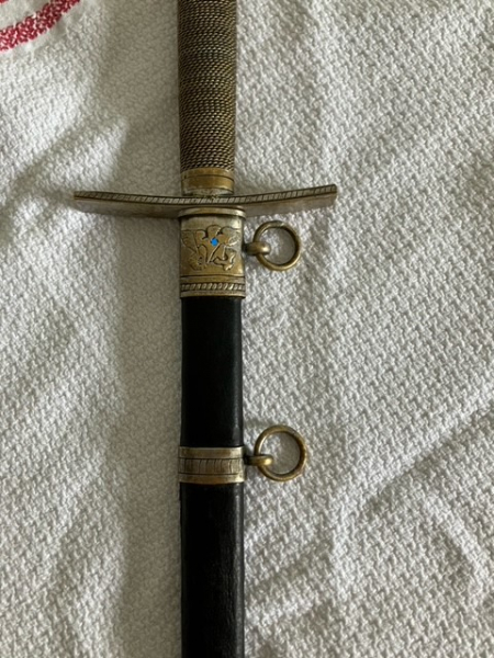 Ich biete hier aus einer Sammlungsauflösung einen HJ-Führerdolch an. Hersteller Hörster Solingen (RZM M7/36), Die Klinge ist leicht fleckig ohne Rost, die Devise gut zu erkennen, unbeschliffen. Die Scheide ist beledert mit Beschlägen, oberer Beschlag mit HJ-Adler. Feine Drahtwicklung am Griff unbeschädigt.