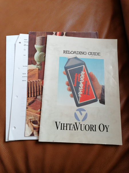 Alte Reloading Guides und diverse Ladedaten von Vihtavuori in gebrauchtem Zustand. Versandkosten Deutschland 10,20€