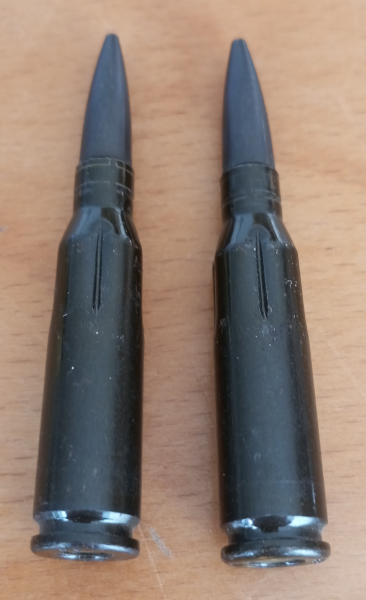 Verkaufe 2 Exerzierpatronen Kaliber 5,45x39, komplett aus Metall.