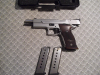 es handelt sich um eine Sig Sauer P 220 S das Vorgängermodell der X-Six, eine aus der P220 Serie entwickelte Sportvariante mit 6 Zoll Lauf die über eine außergewöhnliche präzise Schussleistung verfügt. (Siehe Spiegel nachdem ich Monate mit ihr nicht geschossen habe 3x 5 Schuss.25m) Wer mit dieser Pistole regelmäßig trainiert schießt weit vorne mit. Verkaufe aus Altersgründen.