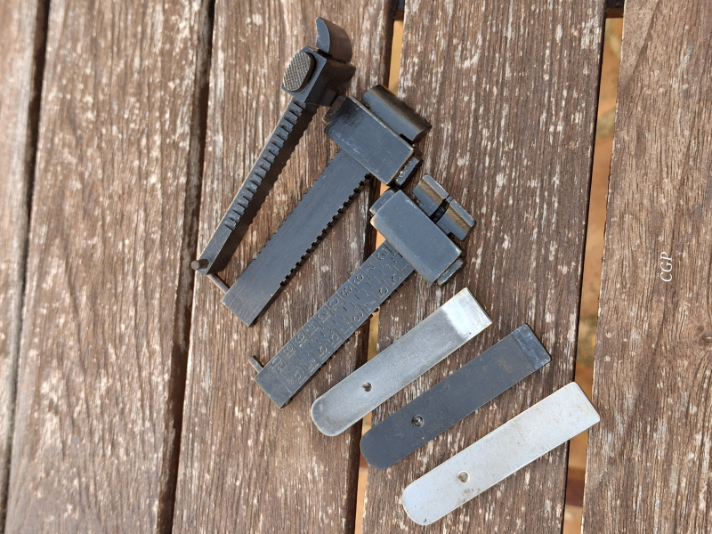Modell / Marke : Mosin Nagant 1891/30 Teil : Visierblatt , komplett mit Drücker & Feder Zustand :russische Fertigung im guten Originalzustand