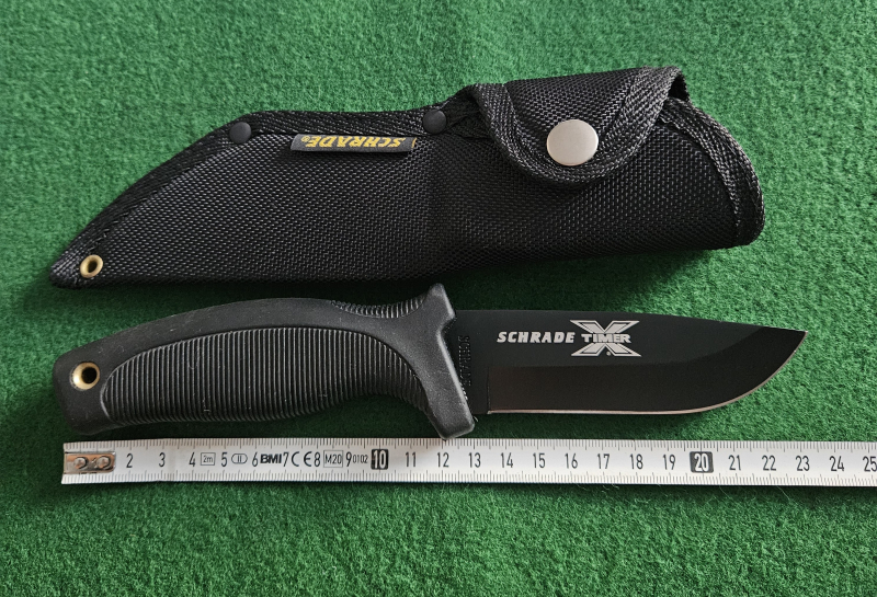 Verkaufe ein Schrade Messer. Okay wie so vieles mittlerweile auch aus China. Aber die Qualität und der Preis überzeugen. Das Messer liegt Arschgeil in der Hand. Ich habe zwei und habe mit meinem anderen schon allerhand angestellt.