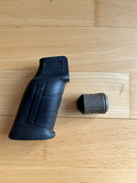 Ich biete einen wenig benutzten Griff (schwarz) und Verschlussgriff (FDE) von MDT an. Der Griff passt auch auf AR15-Systeme. Beide waren für kurze Zeit auf meinem MDT-Chassis mit einer Ruger All American montiert. Ob der Verschlussgriff noch auf anderen Büchsen passt, kann ich leider nicht garantieren.