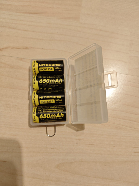 Zur Auktion kommt eine Pakcung (4 Batterien) CR123A NiteCore 16340 Li-Ion Akku (123A) Zelle 3,7 Volt 650mAh