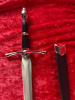 Technische Details (D3): • Gesamtlänge: ca. 35 cm • Klingenlänge: ca. 21 cm • Gewicht: ca. 160 g • Material Klinge: rostfreier Edelstahl (STAINLESS) • Klinge: scharf und spitz • Griff: schwarz mit verchromten Zierelementen, nicht abschraubbar • Parierstange: leicht gebogen, verchromt • Knauf: tropfenförmig, verchromt • Scheide: schwarz, mit Metallbeschlägen an Spitze und Mund