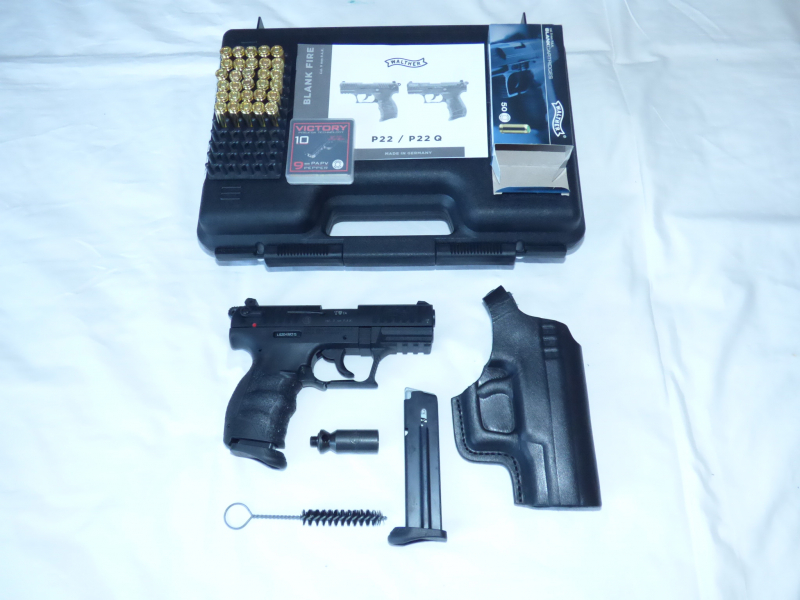 Angeboten wird die Gas-/Schreckschusspistole auf den Fotos. Walther P 22 Q mit Formholster aus Leder und 2.Magazin..