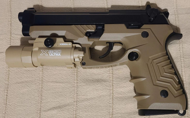 Modell Beretta M9 GripTac Airsoftpistole Vollmetall GBB coyote