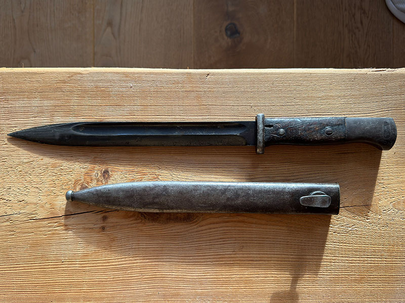 Das Bajonett / Seitengewehr und die Scheide sind in einem guten Zustand und 100% original. Der "Drücker" funktioniert hervorragend.