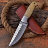 Die ebenfalls Hand gefertigte Leder Scheide besteht aus hochwertigem Rind Leder und wurde dem Messer genau angepasst.