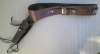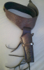 Sehr schöner Revolvergurt, braunes Dickleder, mit floralen Motiven punziert. Der 7,5 cm breite und von 120 bis 125 cm Länge verstellbare Gurt hat 36 Patronenschlaufen. Mit den Dekopatronen cal. 38 spezial (ohne Pulver und mit abgeschlagenen Zündhütchen) und den leichten Gebrauchsspuren ist er ideal für Reenactment. Die Dekopatronen sind nicht angebohrt! Das ebenfalls punzierte Holster ist rechts am Gurt befestigt und für Revolver von 5 1/4 bis 7 ½ Zoll Lauflänge geeignet (siehe Fotos).