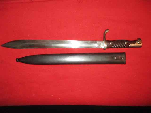 Seitengewehr wohl für SG 98/05, bayrische Ausführung (unverbindliche Angabe) mit Reinigungsloch. Abnahmestempel auf dem Rücken. Nummer 1059. Altersbedingte Gebrauchsspuren vorhanden. Weitere Fotos auf Anfrage. Internationaler Versand auf Anfrage.