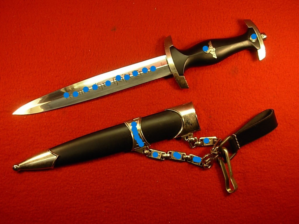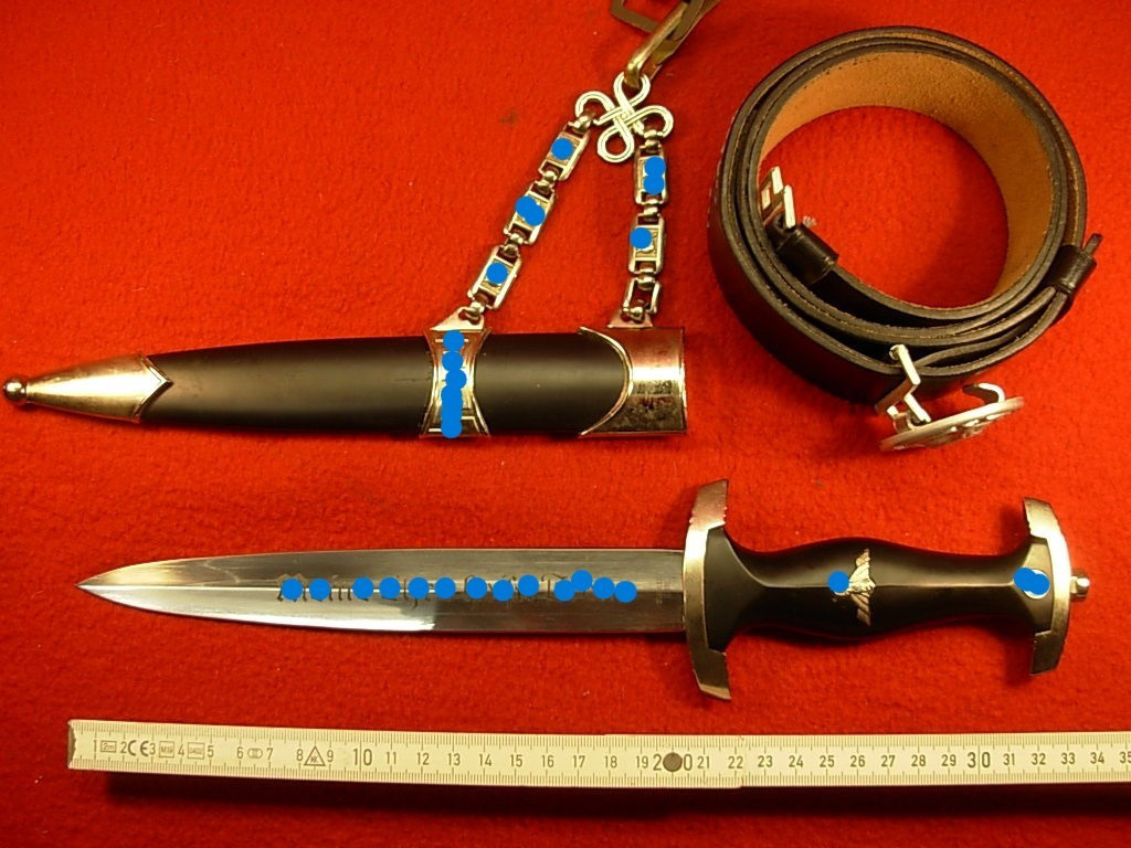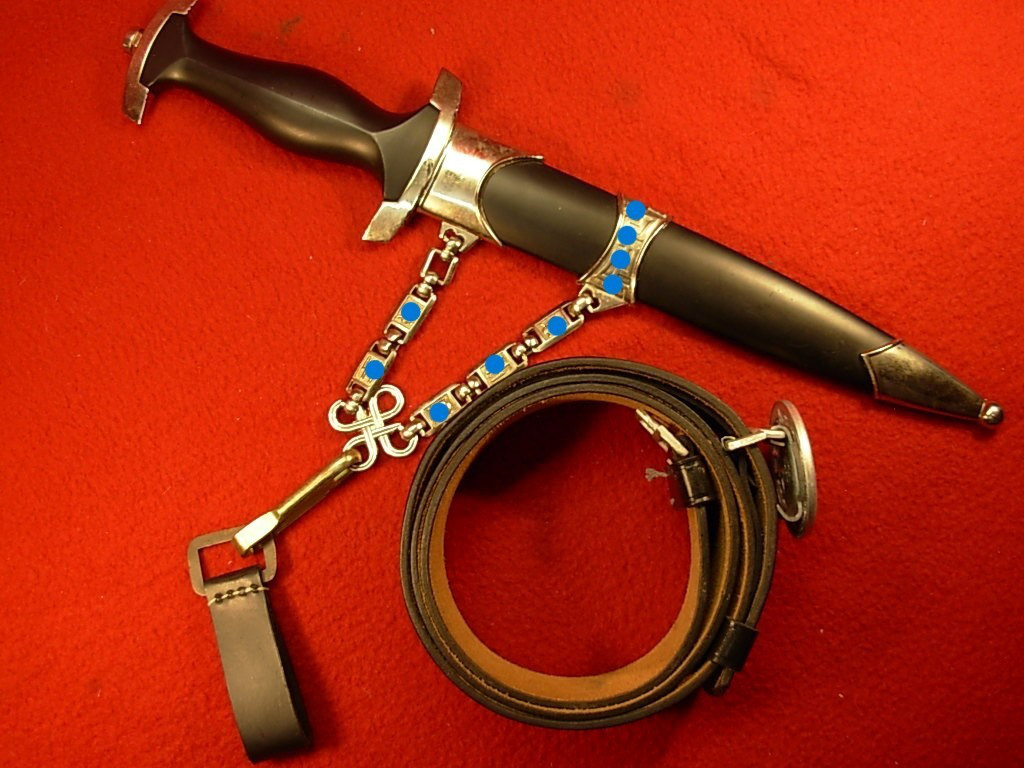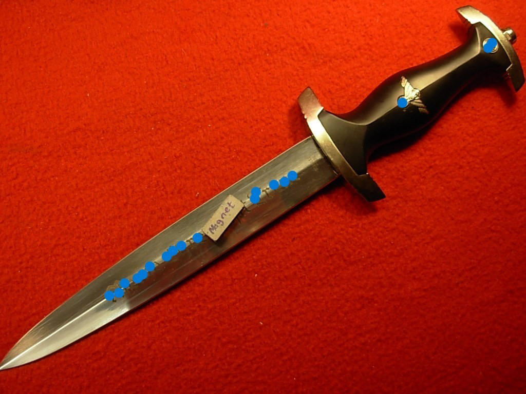 II.WK – Dienstdolch mit Gehänge und Tragegurt – Klinge mit Aufschrift MEHT magnetisch –