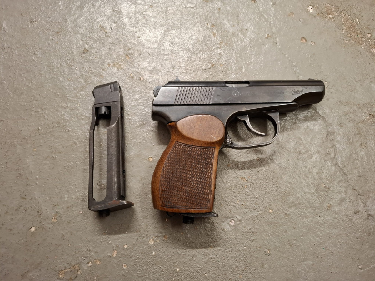 Baikal Ganzstahl CO2 Pistole neuwertiger Zustand aus Sammlernachlass, mit Ersatzmagazin
