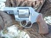Röhm RG 89, Beschuss 1993 in Ulm, PTB 451, Kal. 9 mm K. Da bei dem Revolver die Brünierung sehr stark abgerieben war, wurde sie sorgfältig entfernt und die Oberfläche seidenmatt gebürstet. Die durch offensichtlich starken Beschuss entstandenen Narben wurden bewusst nicht entfernt. So entsteht die Optik eines Revolvers aus blankem Stahl der schon eine bewegte Geschichte hinter sich hat. Daher mit Sicherheit ein interessantes Dekostück oder auch weiterhin für den Selbstschutz geeignet.