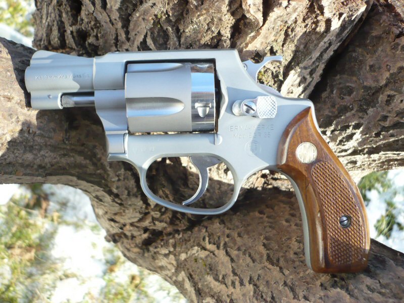 Erma EGR 66, Beschuss 1979 in München, PTB 162, Kal. 9 mm K. Der Revolver präsentiert sich in eleganten Titangrau mit polierten Elementen und ist in diesem Design einzigartig. Die Griffschalen sind aus lackiertem Holz mit eingelassenen Erma Emblemen. Der Revolver befindet sich in Bestzustand und wurde nach der Überarbeitung natürlich nicht mehr geschossen, wäre aber voll funktionsfähig. Das letzte Foto zeigt, dass der Revolver innen genauso perfekt bearbeitet wurde wie außen. Geliefert wird nur der Revolver ohne weiteres Zubehör.