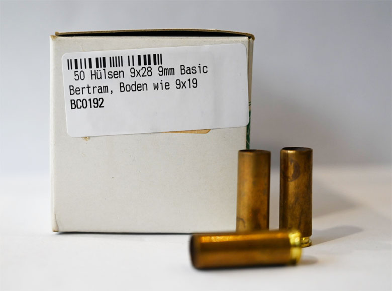 Zur Versteigerung kommen hier 50 neue Boxer Hülsen 9x28, (9mm Basic Bertram) der Hülsenboden entspricht der Patrone 9mmLuger. Die Hülsen sind für den versierten Wiederlader bestens als Ausgangsmaterial zur Herstellung von Hülsen für seltene Kaliber wie 9 mm Steyr, 9 mm Mauser und andere geeignet, stammen aus einem älteren Lagerbestand, sind leicht fleckig und werden in der Originalschachtel an den Höchstbieter geliefert.