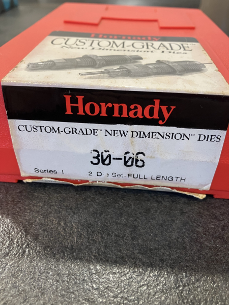 Zum Verkauf kommt hier ein gebrauchter 30-06 Hornady Matrizensatz mit Vollkalibiermatrize, wie auf dem Bild zu sehen mit Hülsenhalter.