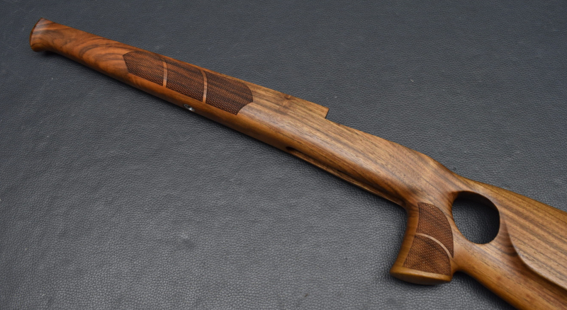 Als Ersatz für den Original Schaft, für Standardsysteme mit 115mm Systemschraubenabstand In neuem attraktiven Design, einfacher Austausch gegen den Original Schaft, Nußbaum-Holzschaft mit Backe im Rigby Style, ,Old english Gummischaftkappe, Schraubenbohrungen mit Alubuchse, Laufblocklager in ALU. Abstand der beiden Bohrungen für Systemschrauben am Abzugsbügel 115mm Laufrinne für passend für Läufe mit maximal 19 mm Außendurchmesser Am Pistolengriff und Vorderschaft mit griffiger Fischhaut. Neuware Hier HK III, original Foto, weitere Holzklassen in unseren anderen Auktionen.