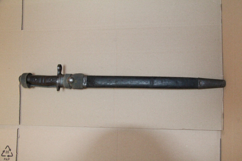 Englisches P13 Bajonett,Hersteller:Remington 1917,Klinge gut scharf und spitz,Griff und Drücker gut,Lederscheide mit Abrieb,Ort und Mundblech sitzen fest.