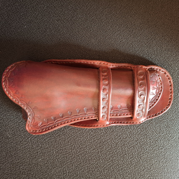 Das oben beschriebene Holster ist von mir eine authentische Nachbildung eines der beliebtesten Holster der damaligen Zeit. Das sogenannte Westernholster "Mexican Loop" wurde zwischen 1890 bis weit ins 19. Jahrhundert von mehr oder weniger berühmten Saddlereien in Amazonas und Colorado aber überwiegend in Mexico gefertigt. es war von jedermann äußerst beliebt beim einfachen Cowboy bis zu Gesetzesmännern und Desperados. Meine Holster dienen mir als Vorbild und Vorlage aus dem Buch von Richard Rattenbury "Westernholster" indem der ganze Werdegang des Holsters mit vielen schönen Originalfotos beschrieben ist. Ich fertige die Holster mit viel Liebe und Leidenschaft aus hochwertigen Rindsleder, alle Nähte sind handgenäht, und die Muster(Punzierung) sind nicht aufgedruckt sondern mit einem Punzierstempel ins Leder eingeprägt. Meine Holster sind für den Colt Single Aktion 5 1/2 Zoll. Anbei zu meinem Holste noch ein paar Fotos von Originalholster aus aus der Pionierzeit der.....................