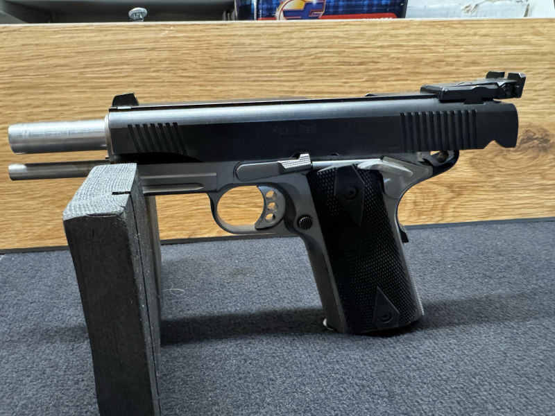 Ich biete hier meine Peters Stahl 1911 im Kaliber 9mm, Lauf 5 Zoll und Original Tasche mit Werkzeug und Anleitungen sowie der originalen Griffstücke, zum Verkauf an. Die Waffe befindet sich in einem einwandfreien Zustand und wird mit 2 Magazinen verkauft.