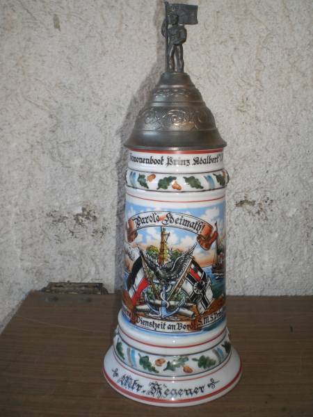 Großer alter, prächtiger Reservistenkrug mit Zinndeckel im Stil um 1900