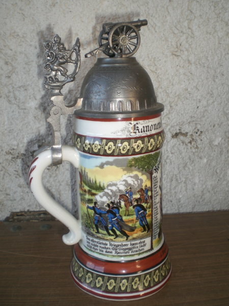 Großer alter, prächtiger Reservistenkrug mit Zinndeckel im Stil um 1900