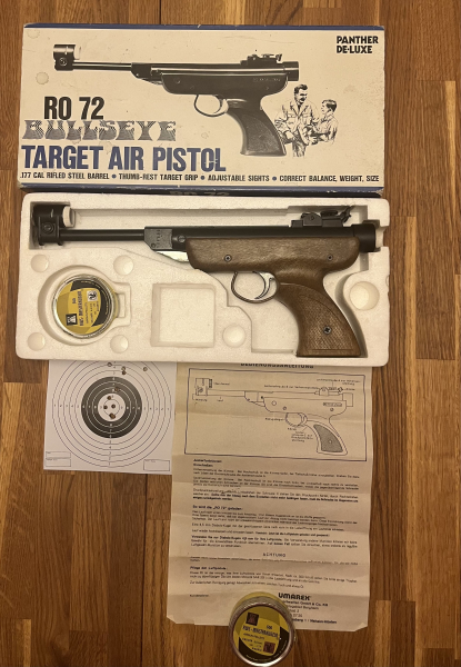 Ich verkaufe eine neuwertige Luftpistole RO 72 Bullseye Target Air Pistol Panther De-Luxe.