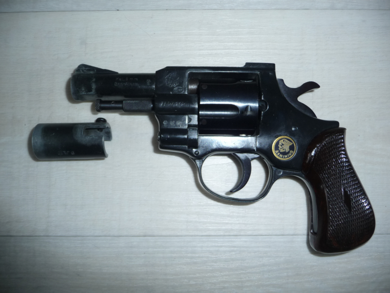 Ein Schreckschussrevolver Arminius HW 1G PTB 89-69, Kaliber 9mm Gas-Alarm mit Abschussbecher.
