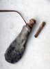 Alter Kugelbeutel aus Leder und Holz, ca. 1850.