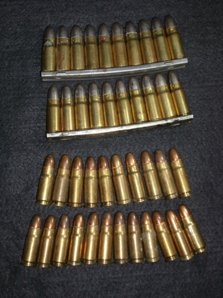 Sammlungsauflösung : Zwei Ladestreifen mit Patronen cal.7,63 Mauser, DWM K 403 K , ein Ladestreifen mit DM gestempelt, dazu lose von Fiocchi und andere