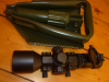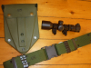 Verkaufe aus Nachlaß Konvolut: Zielfernrohr 3-9x40 mit Leuchtabsehen, Montage, Weaver/Picatinnyschiene, Schutzdeckel, kurze Bauweise ca. 21cm, klare Optik, sehr guter Zustand, keine Beschädigungen. US Klappspaten mit Holster und US Koppel, neuwertig. Verkaufe alles als Kopie/Repro, anbei Fotos.