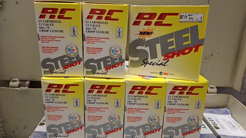 Ich verkaufe 175 Schuss Stahlschrot der Marke RC SteelShot special T3 im Kaliber 12/70 Gr. 8 1/2 (2,2mm) mit 24Gramm