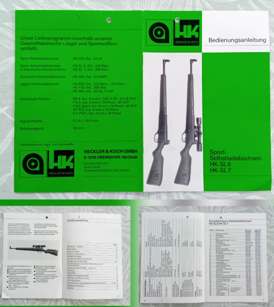 Bedienungsanleitung Heckler und Koch SL 6/7. 19 Seiten von 1986 mit Ersatzteilliste und Ex - Zeichnung, Der Verkauf erfolgt nur gegen Vorkasse oder Abholung bei Barzahlung. Versand versichert in Deutschland 8,- Euro ins EU - Ausland 18,- Euro