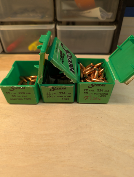 Mit dazu gibt's 7 Sierra Varminter Cal 22 Geschosse mit 50 grain # 1320 und