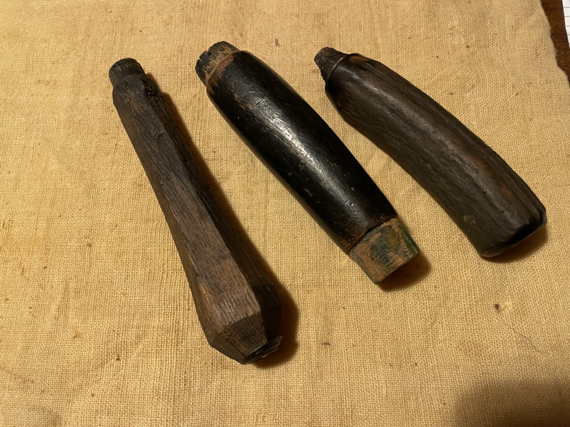 drei sehr alte Griffe originale für ein Messer einen Hirschfänger und einen Grabendolch