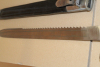 M1878 mit drei Nieten im Griff,Klinge gut ohne Kerben,Säge scharf,Griffschalen und Drücker gut,Scheide gut Naht geschlossen,Ort und Mundblech ohne Dellen,mit zugehörigen Koppelschuh im guten Zustand.