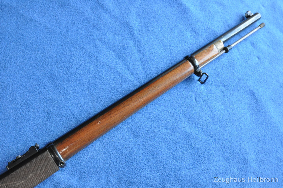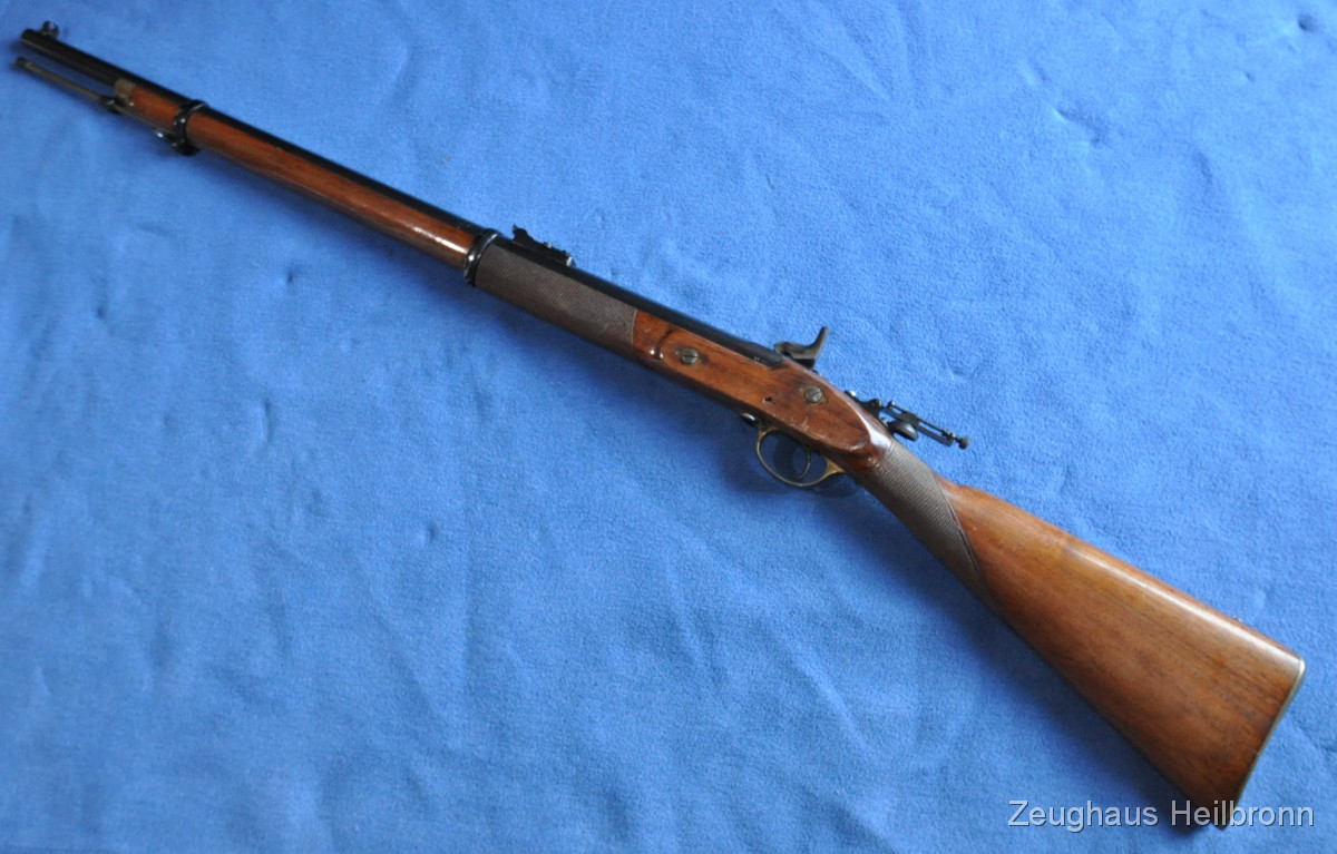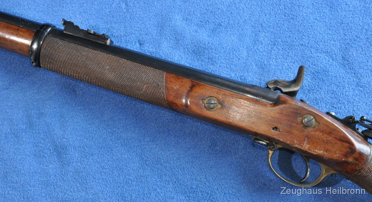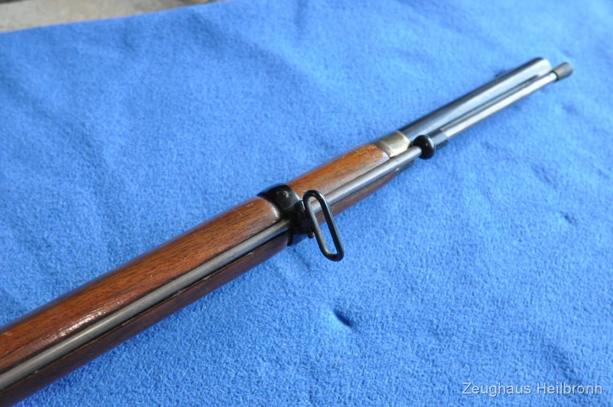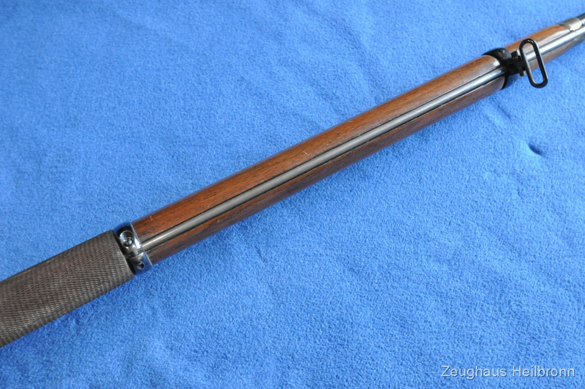 Waffe in einem schönen Zustand mit leichten Gebrauchsspuren am Schaft, Brünierung sehr gut, siehe Bilder, mechanisch voller Funktion, Lauf sehr gut. Mit Diopter. Hochwertige Fertigung aus England.