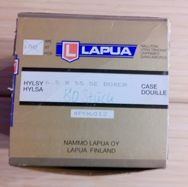 Lapua 80 ungezünderte Hülsen 6,5 X 55 Boxer unbenutzt