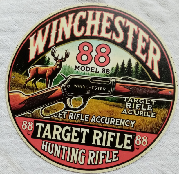 Blechschild WINCHESTER Model 88 - Durchmesser ca. 20cm --- Versandkosten: 2,30 €. --- Der Versand als Großbrief erfolgt auf eigenes Risiko ! ---- privater Verkauf, keine Garantie oder Gewährleistung, keine Rücknahme. kein Versand ins Ausland --