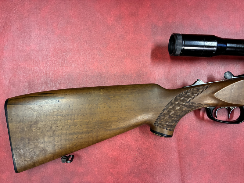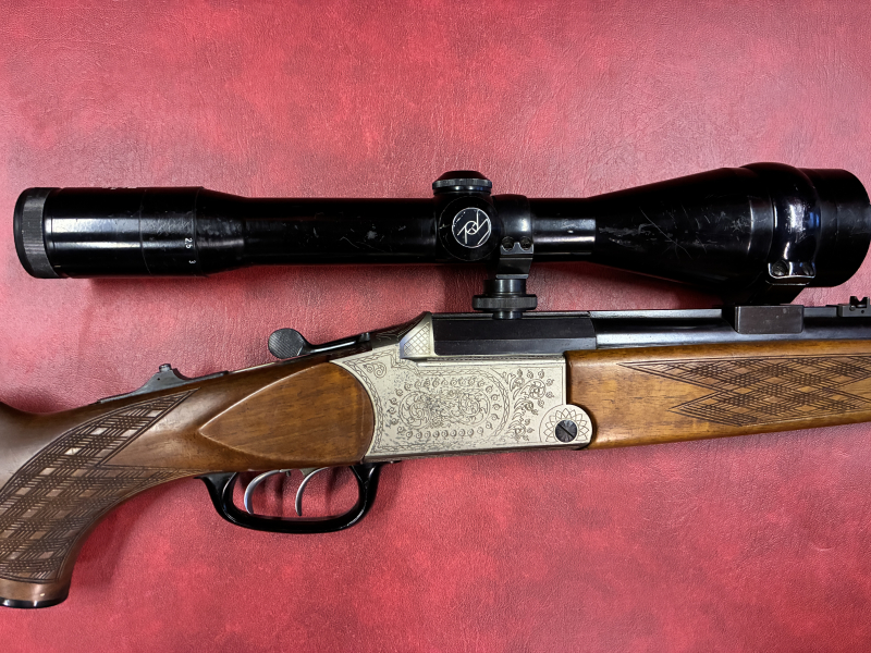 Verkaufe gebrauchte Blaser BBF Mod. ES60/63 (VS ohne Schnäpper) im Kaliber 5,6x50Rmag-12/70. Der vordere Abzug ist einstechbar, Handspannung ist Standard. Montiert ist ein Zeiss-Diavari 2,5-10x52 Abs. 4 auf einer Blaser-Schwenkmontage. Das ZF, die Holz- und Metallteile der Waffe haben Gebrauchsspuren.