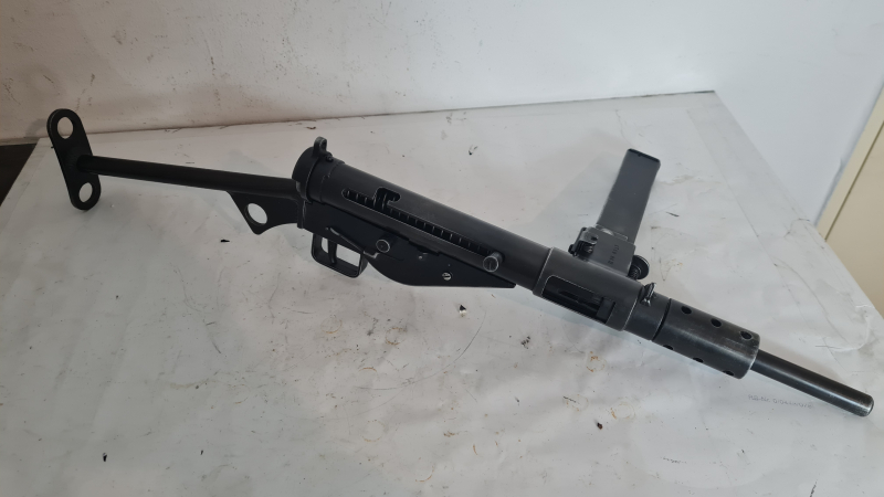 Sten Mark II, Kaliber 9 mm, Vereinigtes Königreich 1940 (Zweiter Weltkrieg). Eine authentische Nachbildung dieses Maschinengewehrs, das 1940 entwickelt wurde, als England allein war und von einer bevorstehenden Invasion Deutschlands bedroht war. Die Regierung musste dringend ihre Soldaten mit einer Waffe aus eigener Produktion ausrüsten. So wurde die Sten-Maschinenpistole geboren, eine Waffe mit einem eigenartigen Design und geringer Zuverlässigkeit. Sie war aber auch eine der am leichtesten erkennbaren Waffen des Zweiten Weltkriegs und wurde sowohl von Luftlandetruppen als auch von Spezialeinheiten in fast allen Ländern eingesetzt, die von den Deutschen besetzt waren und deren Bevölkerung Widerstand leistete. Sie wurde auch von den Streitkräften des Commonwealth während des Zweiten Weltkriegs und des Koreakrieges eingesetzt. Die besonderen Merkmale der Waffe waren das einfache Design und die niedrigen Produktionskosten. Der Name STEN ist ein Akronym, das sich von den Namen der führenden Waffendesigner ableitet: Bürgermeister Reginald Shepherd, Harold Turpin und dem Ort Enfield, an dem sich die Royal Small Arms Factory (RSAF) von London befindet. In den 1940er Jahren wurden rund vier Millionen Sten verschiedener Versionen hergestellt. Die Sten-Maschinenpistole verwendete eine Patronenhülse 9 x 19, was ein Bonus war, wenn deutsche Munition erbeutet wurde, da man sie verwenden konnte. Der Sten war klein und ließ sich leicht in mehrere Teile zerlegen und wurde daher für Operationen der Partisanen in Europa geschätzt.