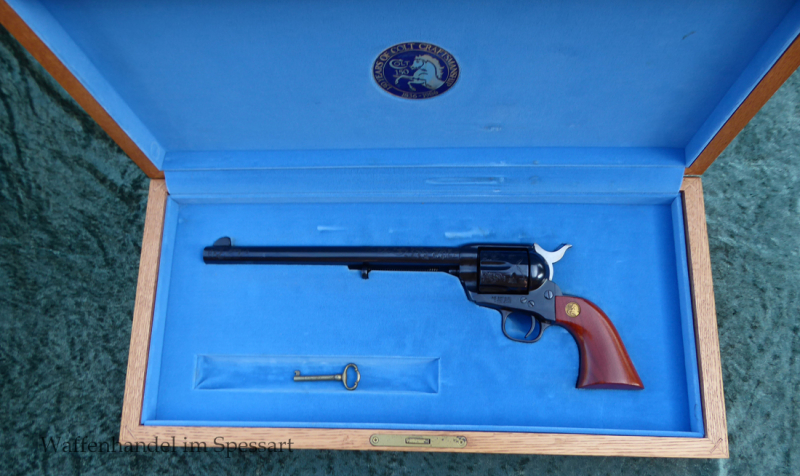 Revolver Colt SAA 1873 Buntline, Jubiläumsmodell im Kasten.