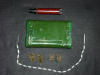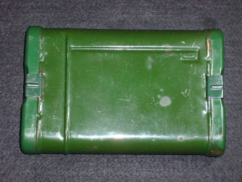 ein Reinigungsgerät , wie Behälter K98 k , für Pistole 9 mm, 4 kurze Bürsten, eine kurze Kette für Pistolen (nicht gekürzt Original), Oeler mit Bakelit, kein Hersteller gefunden, keine Beulen, guter Zustand