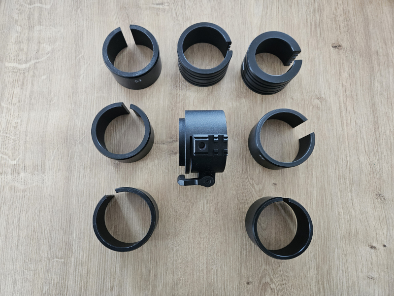 Zum Verkauf steht hier ein Klemmadapter mit Gewinde 52x0,75 mit Reduzierringen für folgende Objektivrohraußendurchmesser: 50mm, 56mm, 57mm, 58mm, 59mm, 60mm, 61mm Die Klemmkraft kann über den Hebel individuell eingestellt werden.