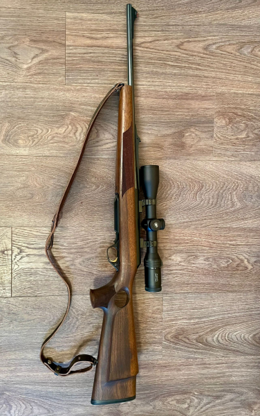 Zum Verkauf nur an EWB steht ein Geradezugrepetierer Browning Acera im Kaliber 30-06 inkl. Zielfernrohr Spectra GPO 1,5-9x44i, G4i Drop Absehen mit einem hochwertigen Lochschaft aus Holz und einem Gewehrriemen. Der Schaft wurde nach einem Schaftbruch beim Büchsenmacher erneuert. Am Laufende befindet sich ein Leuchtkorn, daher kann die Waffe auch ohne Zielfernrohr über die offene Visierung eingesetzt werden. Das Magazin ist aus Metall gefertigt. Der Verschluss, Magazin, sowie Abzugs- und Schlossmechanismus befinden sich in einem Systemkasten. Er ist bis auf das Auswurffenster und den Magazinschacht geschlossen. Der Verschluss gleitet innerhalb des Kastens in Längsrichtung und verriegelt zwangsgesteuert über einen Drehknopf mit sieben leicht schräg angeordneten Warzen direkt im Lauf. Die Bedienung des Verschlusses erfolgt über einen feststehenden, seitlich aus dem Systemkasten herausragenden Repetierhebel. Als Sicherung dient ein Schieber im Abzugsbügel, der das Züngel feststellt. Die beim Zielen eingenommene Kopflage an der Büchse kann ohne Änderung beibehalten werden. Das Zielauge wird nicht durch zurück gleitende Verschlussteile gefährdet bzw. abgelenkt. Das Schussbild der Waffe ist hervorragend.