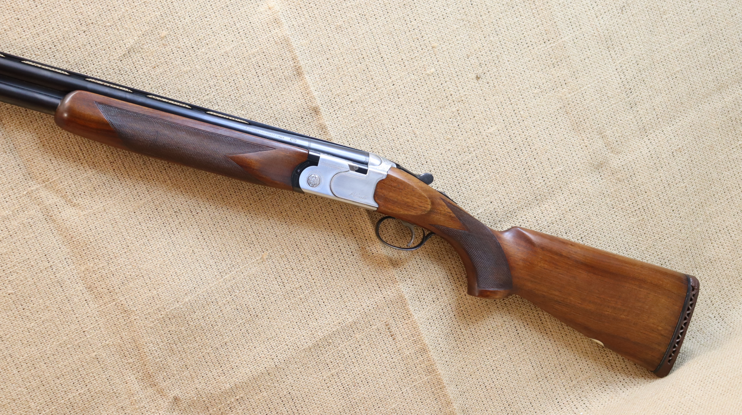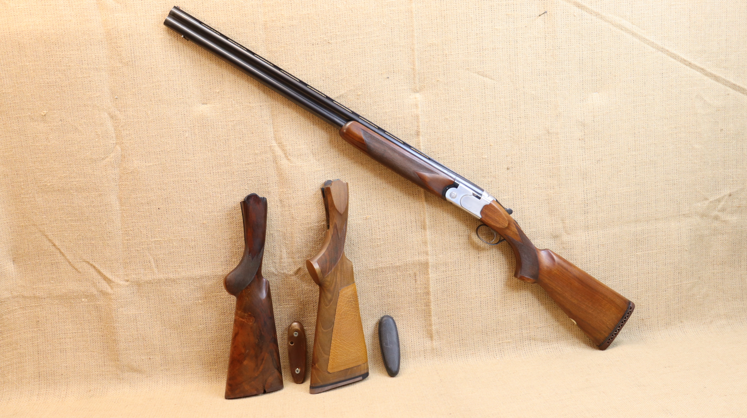 Bockdoppelflinte Beretta S 680 im Kaliber 12/70. Lauflänge 75 cm, Schaftlänge Abzug bis Mitte Schaftkappe gemessen 36,5 cm. Die Flinte befindet sich in einem guten gebrauchten Zustand. Lediglich die Gummischaftkappe am Hinterschaft löst sich auf und sollte getauscht werden. Eine Ersatz-Schaftkappe ist in der Auktion enthalten, diese muss aber angepasst werden.