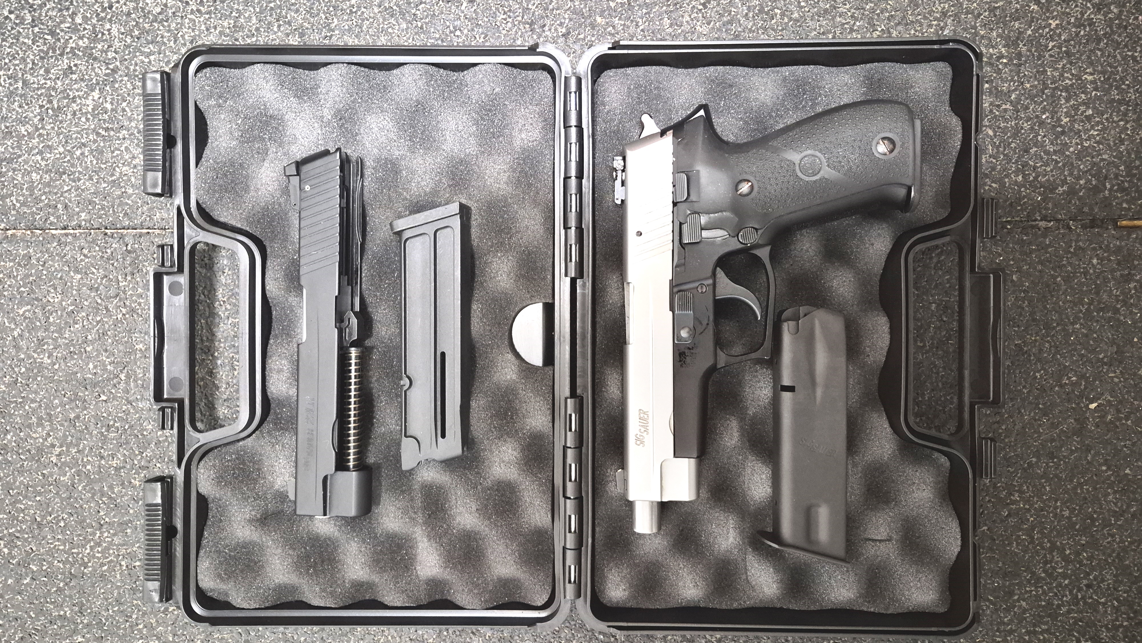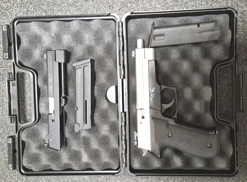 Verkaufe aus einem Nachlass eine fast neuwertige SIG P226S mit 2 Magazinen und dazu was ja selten vorkommt ein vermutlich fast nicht benutztes Wechselsystem in cal. 22lr.